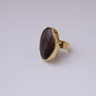 Eclipse profundo – Anillo en bronce con baño de oro 24K y piedra natural