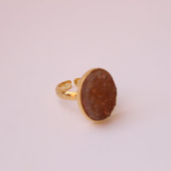 Aurora Cobriza – Anillo en bronce con baño en oro 24K y piedra drusa
